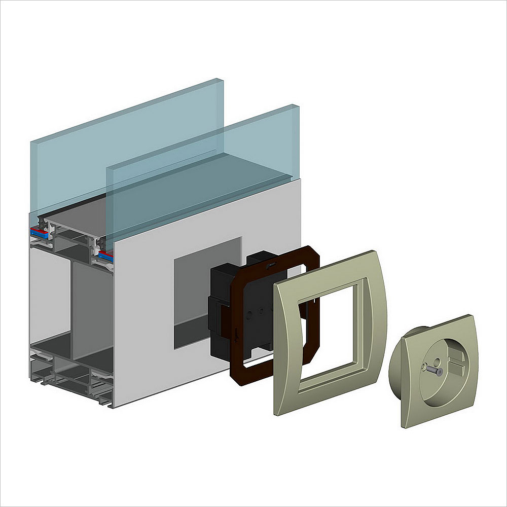 реализована возможность установки в одну раму алюминиевых, цельностеклянных, а также деревянных дверей;