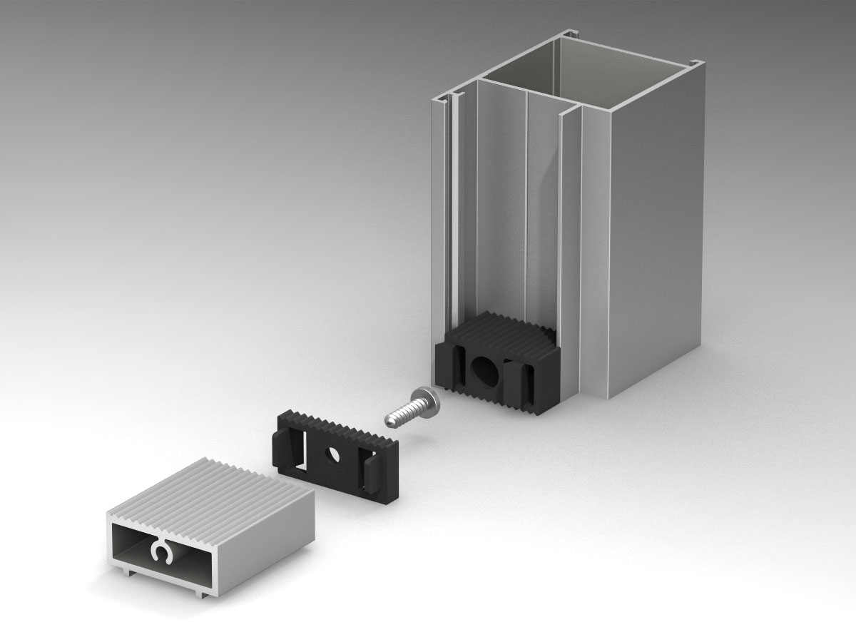 При использовании комплекта заглушек в системе ALT C43 реализован вариант «съемного» порога. Без дополнительных комплектующих порог может быть прикреплен к раме стандартным способом при помощи торцевых саморезов.